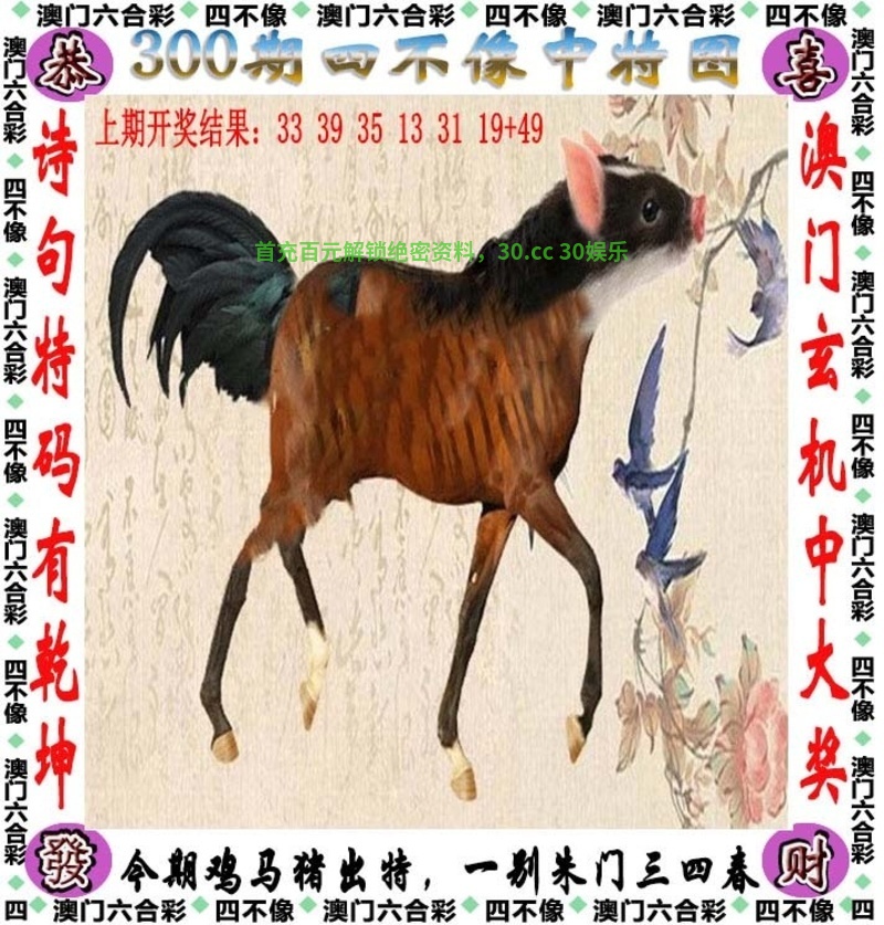 300期:今期鸡马猪出特,一别朱门三四春开:虎40准 ①图解特肖鸡马猪鼠虎 ②合单+大数 |